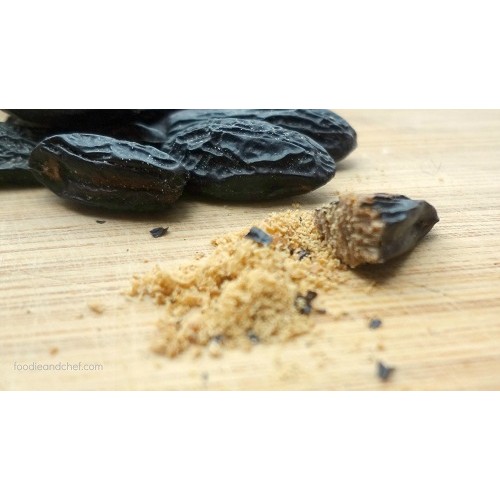 Son semillas alargadas, de un tamaño que no suele superar los dos centímetros, cubiertas por una capa rugosa negra, que oculta a modo de cáscara un interior de color más claro de textura gomosa dura. Tiene un aroma penetrante con distintos matices que pueden recordar a otras especias.