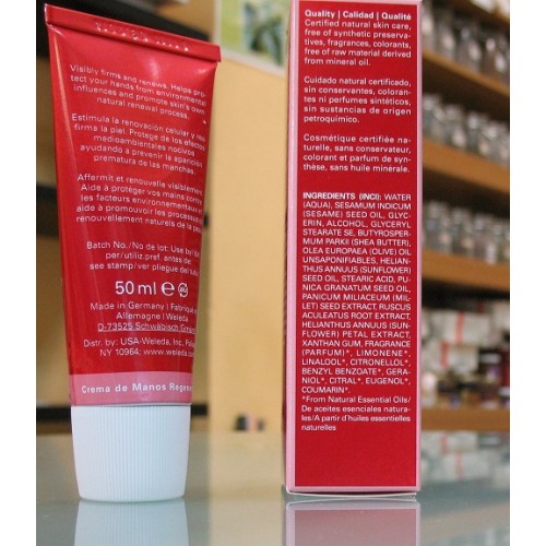 Crema de manos regeneradora de Granada 50ml. de WELEDA. La Crema de Manos Regeneradora de Granada ayuda a proteger las manos de los efectos medioambientales nocivos que causan la aparición prematurade las manchas.