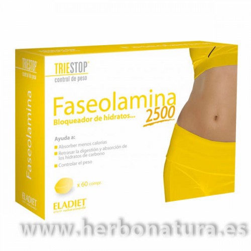 Faseolamina 2500 Triestop Bloqueador de Hidratos de Carbono 60 comprimidos de ELADIET. Proteína procedente de la vaina de la judía blanca cuya acción es bloquear la acción de la alfa-amilasa.