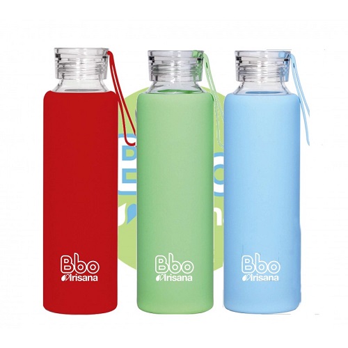 Botella reutilizable Bbo Irisana de Borosilicato con funda de Silicona.