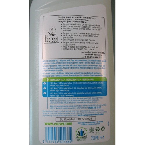 Modelo/Referencia: Limpiador de WC ocean ECOVER 750ml.