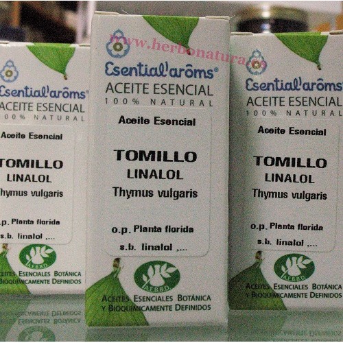 Aceite Esencial Tomillo Linalol (Thymus vulgaris) 5ml. de ESENTIAL AROMS. Buena alternativa al enfriamiento a nivel de las orejas y de la garganta y contra toda obstrucción nasal y bronquial.