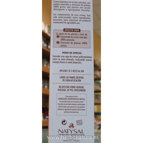 • Crema balsámica de acción calmante, con aceites esenciales y extractos de plantas 100% puros, que ejercen una acción defatigante y apaciguante muscular.