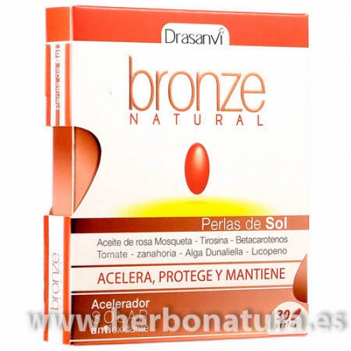 Bronze Natural Betacaroteno, Rosa Mosqueta, Licopeno... 30 perlas de DRASANVI. Bronze Natural es un complemento alimenticio a base de aceite de Rosa de Mosqueta