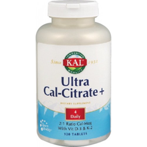 Ultra Cal-Citrate + Calcio, Magnesio, K2, MK7 y D3, 120 comprimidos Kal SOLARAY KAL® presenta una formula balanceada con el aporte de Calcio, Magnesio, Vitamina K2 (Menaquinona 7) y Vitamina D3 para los casos en que es necesario un aporte de calcio.
