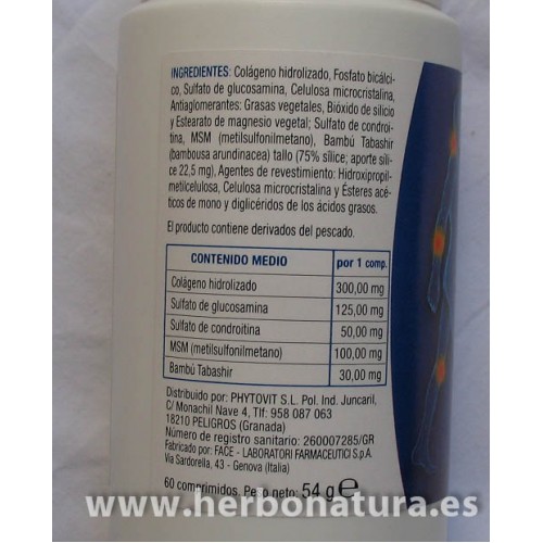• Sulfato de glucosamina: 125 mg, estructura cartilaginosa