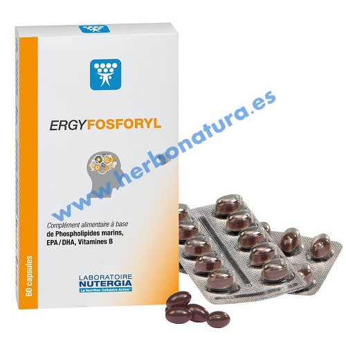 • ERGYFOSFORYL contiene fosfolípidos marinos, aceites de pescados ricos en omega 3 y cofactores vitamínicos. Fosfolípidos y omega 3 son constituyentes esenciales de las membranas de las neuronas.